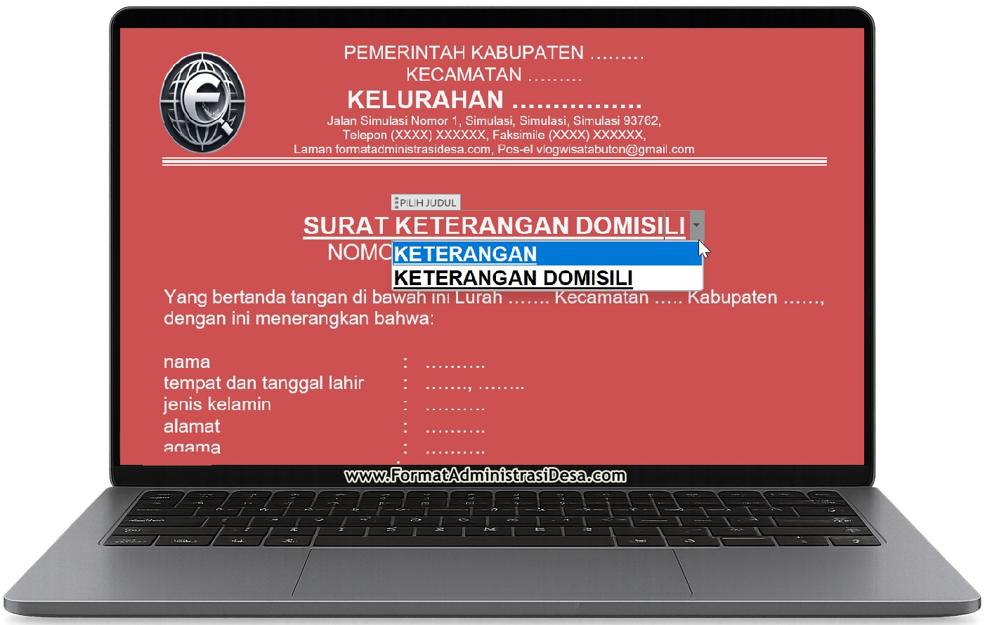 Template Surat Keterangan Domisili Tempat Tinggal dari Kelurahan (Harmonisasi Permendagri 1/2023 dan PerANRI 5/2021)