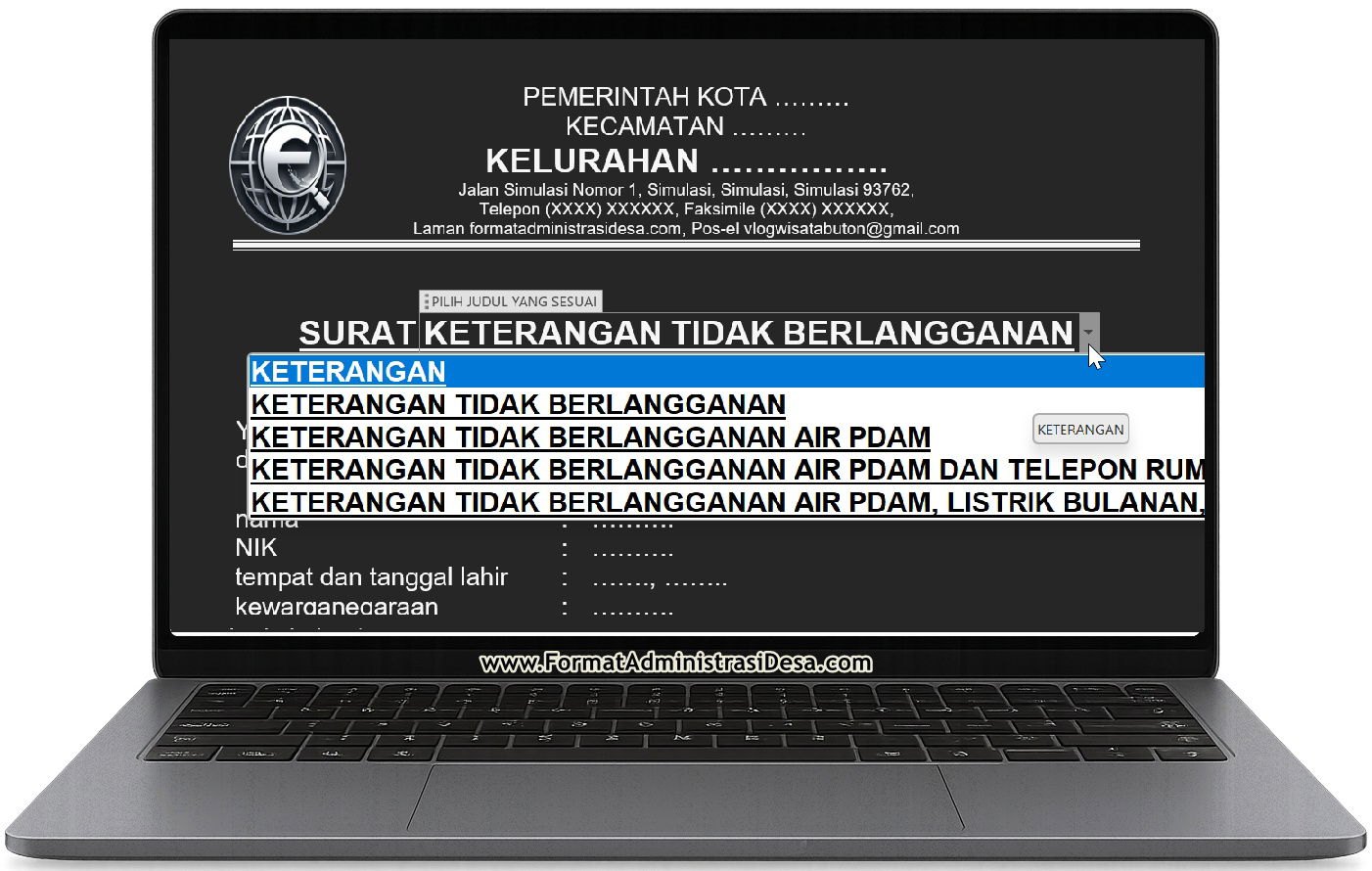 Surat Keterangan Tidak Berlangganan (Air PDAM, Telepon Rumah, dll) dari Kelurahan | Format Permendagri 1/2023
