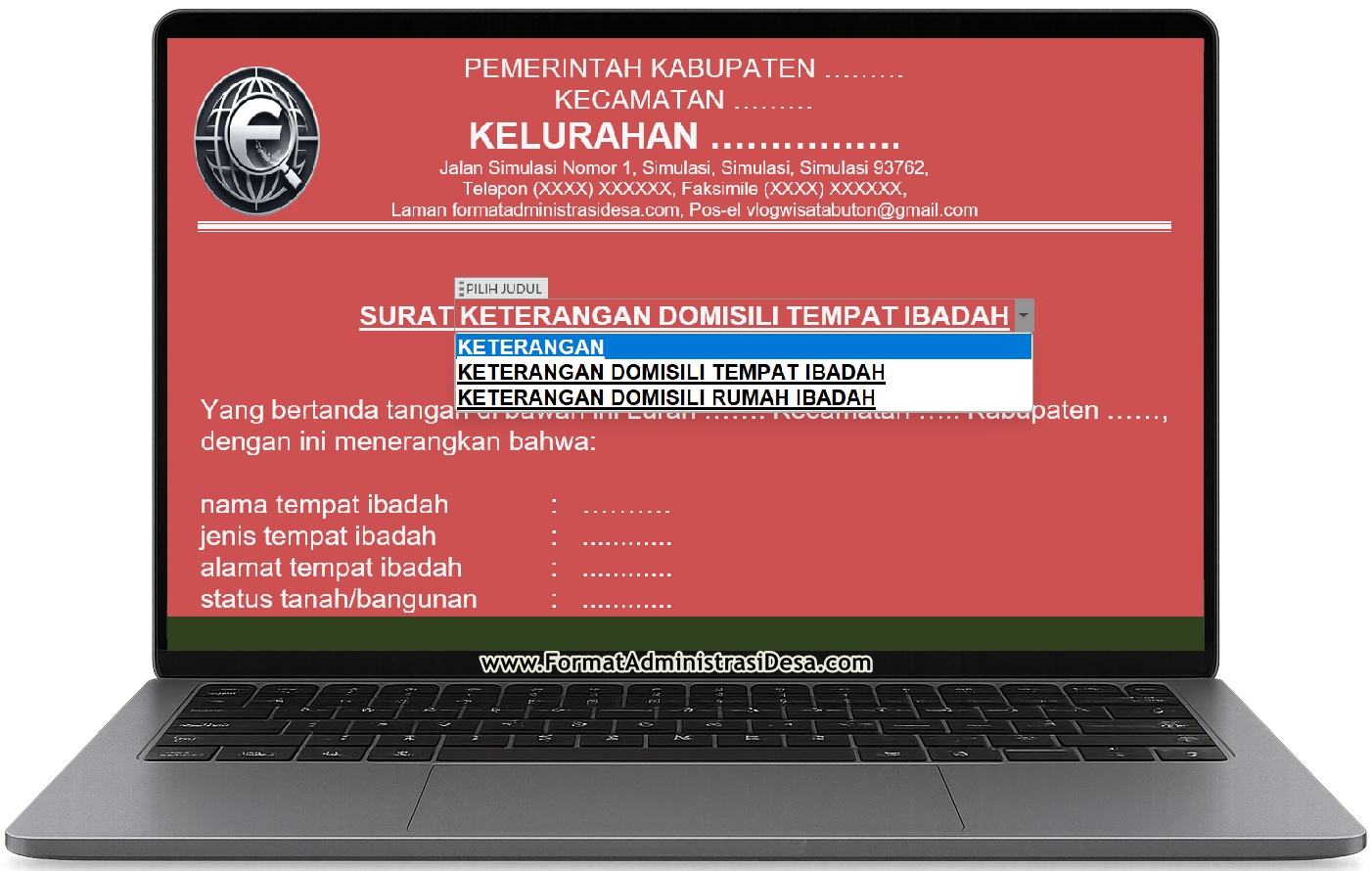 Template Surat Keterangan Domisili Tempat Ibadah (Masjid, Gereja, dll) dari Kelurahan (UPDATE Sesuai Aturan Terbaru)