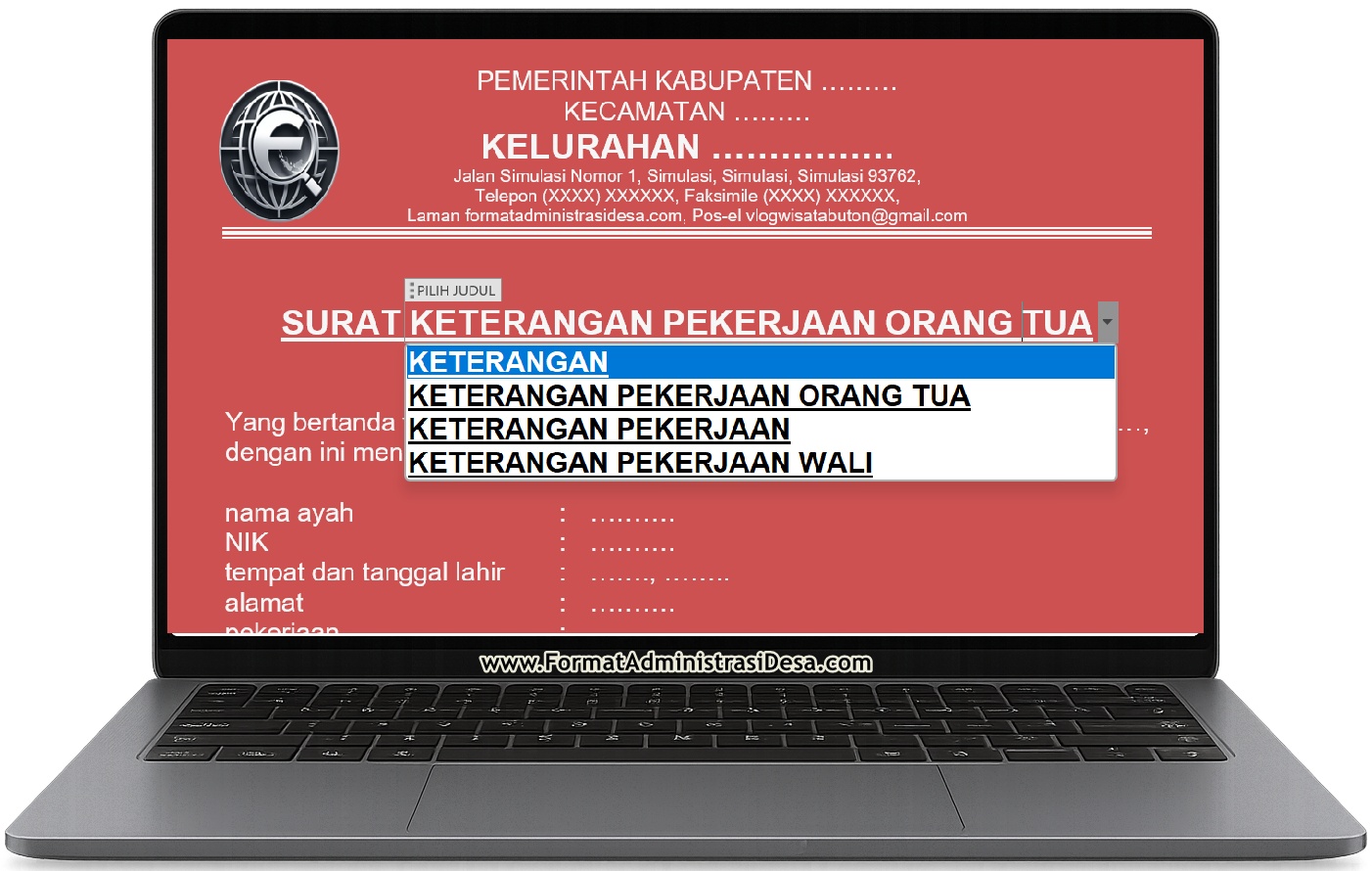 Template Surat Keterangan Pekerjaan Orang Tua dari Kelurahan (sesuai Permendagri 1/2023 dan PerANRI 5/2021)